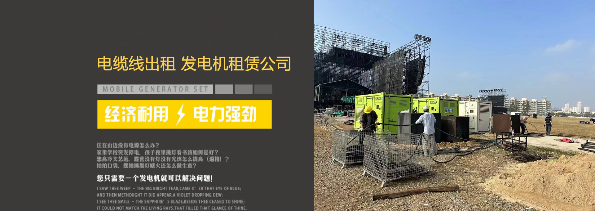 廣州億云電力設(shè)備租賃有限公司是一家專(zhuān)注電纜線(xiàn)、發(fā)電機(jī)、配電箱、線(xiàn)槽板、UPS出租的公司,性能穩(wěn)定,靜音省油,環(huán)保節(jié)能,可滿(mǎn)足不同客戶(hù)需求。我們常年為演唱會(huì)、音樂(lè)節(jié)、展會(huì)、集市、美食節(jié)、慶典、發(fā)布會(huì)、工廠(chǎng)、工地等缺電場(chǎng)所提供電源租賃服務(wù),廠(chǎng)家直租,經(jīng)驗(yàn)豐富,租期靈活。專(zhuān)業(yè)員工現(xiàn)場(chǎng)安裝、調(diào)試、維護(hù),根據(jù)客戶(hù)需要二十四小時(shí)隨時(shí)發(fā)電。